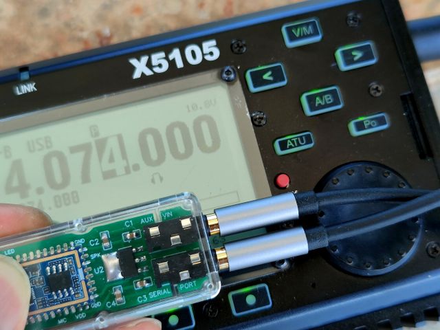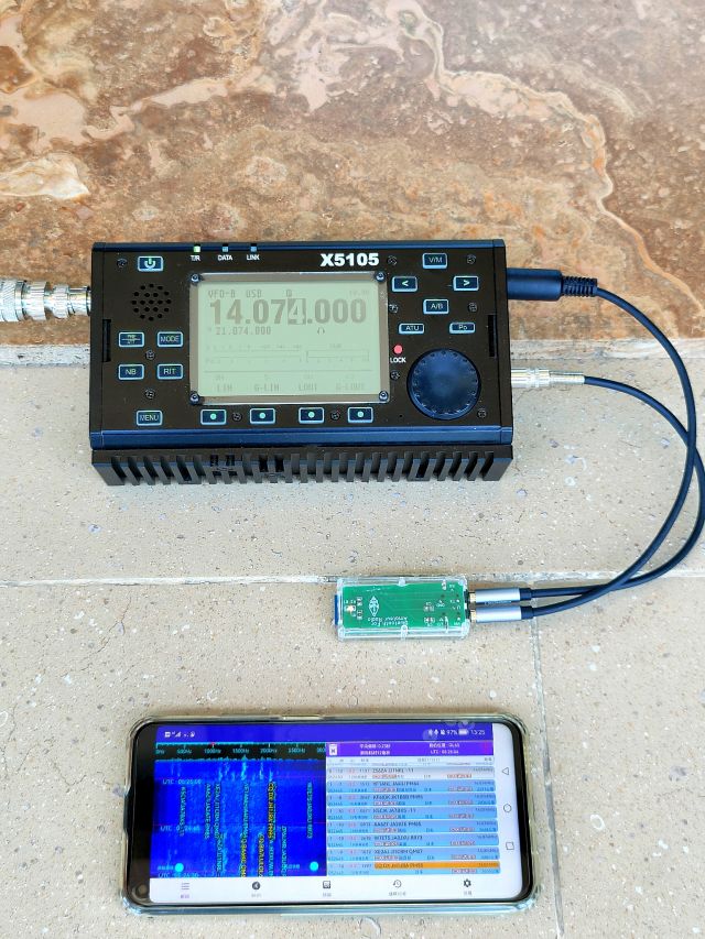 自带蓝牙并支持手机无线连接控制FT8通联的业余无线电电台屈指可数,所以自己一开始的想法就是给没有集成蓝牙的电台额外添加模块。为了节省时间,所有场景都是临时搭建的,以最简单快捷的方式打板。近期测试机型为协谷的X5105,主要是这款电台携带方便,内置锂电池,HF+50Mhz的工作频段,十分适合户外随时通联,配上简易天线和手机就能玩转FT8。测试PASS的蓝牙模块使用自制数据线连接X5105,并从电台ACC口取8V供电,经降压后给蓝牙模块使用。音频方面可使用π型匹配输入。