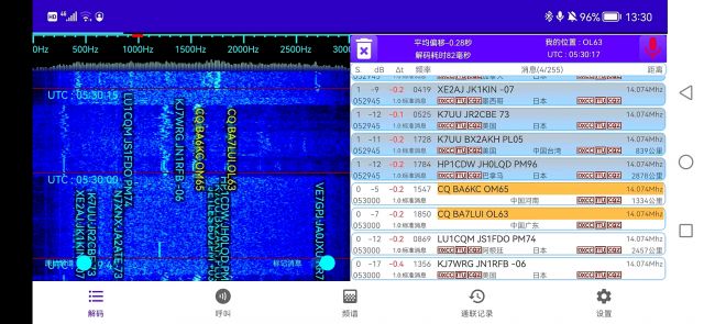 测试环境为居家阳台,使用半波端馈天线,测试时段白天和晚上都有。测试手机只有Android了,鸿蒙和Color OS均无问题。使用FT8CN很快就蓝牙连接上电台,通联多个国内外友台毫无压力。再次感谢FT8CN APP作者BG7YOZ的不断配合,优化客户端蓝牙代码。虽然手机蓝牙控制FT8通联不能完全替代台式或笔记本,但带来的便捷性和乐趣是无穷的。
