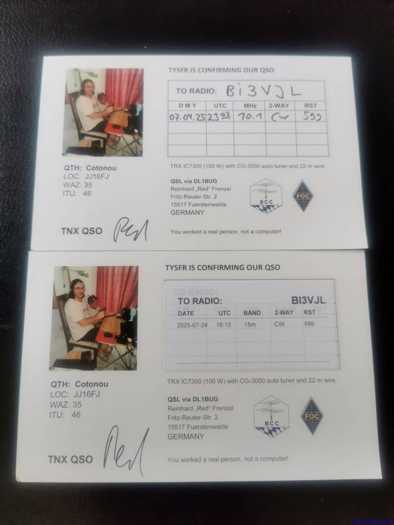2025年7月至8月6日期间,老友DL1BUG再次在贝宁使用TY5FR进行DX远征。想的在多个波段实现更多通联贝宁这个DXCC,随即对其信号情况保持关注。