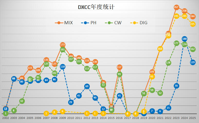 :2025年9月个人QSO数量900出头,是本年度偏少的一个月,年度DXCC 244, ..