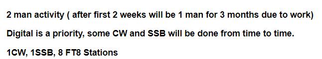 此次远征对方人数只有两人,主要的通联模式是ft8。对于人工操作的CW能通联多少属实没有底,但好在对方远征的时常很充裕,最终的通联结果也较为满意。