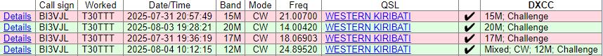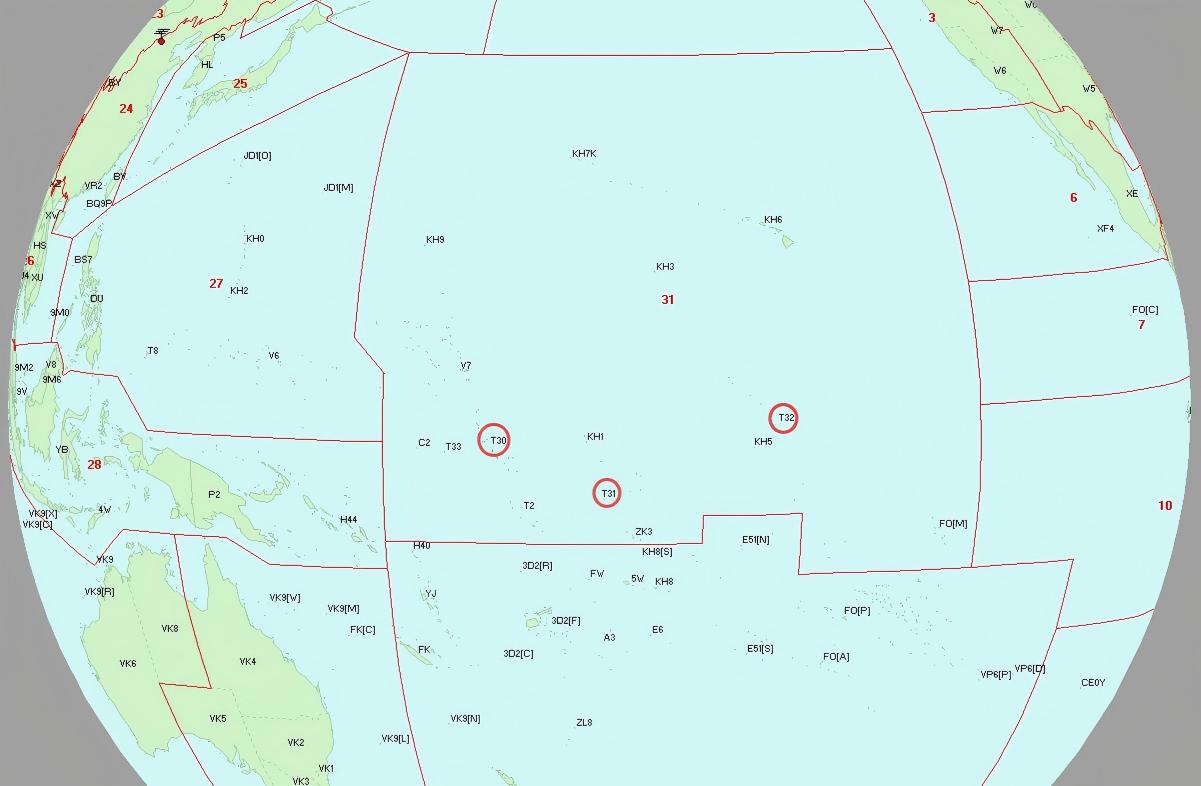 最开始我对T30TTT的关注度是不足的,认为前期已经追逐到了T32EU基里巴斯。直到认真查看了对方的QRZ主页,显示其QTH为西基里巴斯,而T32EU属于东基里巴斯,是两个不同的DXCC实体。对于后续可能出现的T31(中基里巴斯)也需要格外关注。