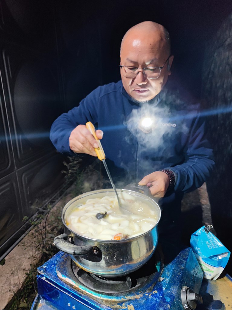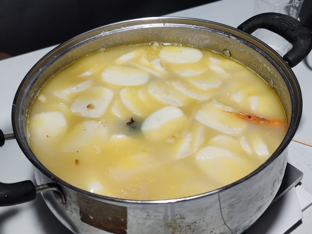 美食家 BA5AJ正在烹制浙江特色的年糕片汤饭(中午的三鲜鸡汤作为汤底)