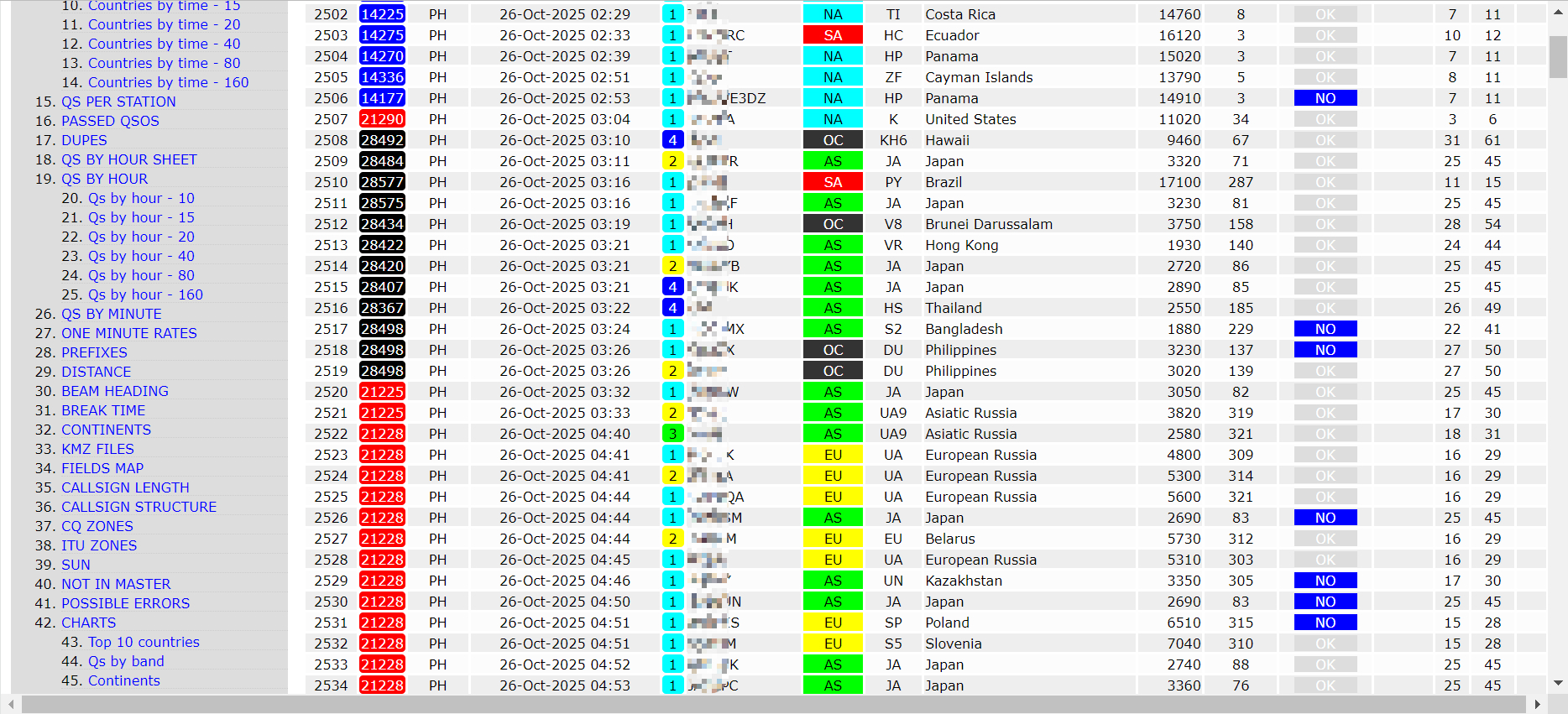 No.2507,NA 20m波段持续到BJT 11 AM,果断切换高波段做其他地区的尝试,通常情况会以AS为主▼