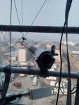 我在阳台窗外用鱼竿架了一个端馈天线,如下图: