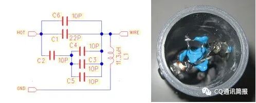 材料为外径40的PVC管和1.5的漆包线。磁线缠绕 22 圈,电感为 11.3uH,因此,在具有 5.1KΩ 虚拟电阻的情况下,调整电容器值以谐振至 7100KHz。调整的结果现在与左下角的接线图一样。