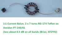 匹配方式:C-POLE可用以1:1巴伦来。推荐使用1;1 Choke Balun,用同轴电缆绕制,也可用馈线在磁环上正反形式绕制。
