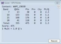 第二天6:00恢复操作,相对以往的经验15米没有期待中的早传播,整个比赛期间传播情况感受非常一般,洲外的电台能听到的数量很少,连东南亚和JA方向的信号也不多,且大多信号较弱。