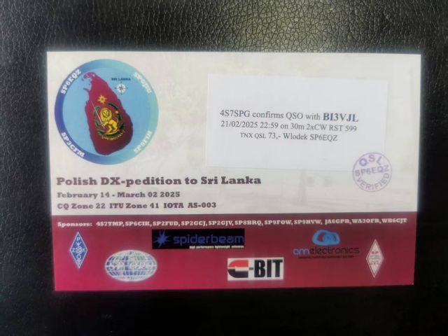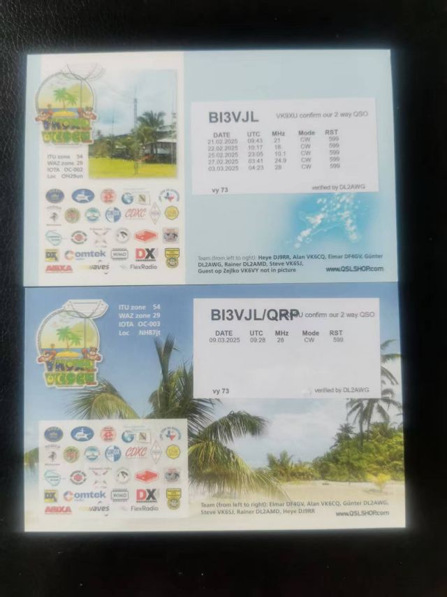 上午10点30分左右,节点信号反映其21兆与28兆同时出现,信号599,耳机收听震耳欲聋。后立即在28兆对其异频呼叫,奇怪的是对方反复给我“KI3VJL”、“XI3VJL”,后来才知道当时对方正在呼叫NA,将我的QRP弱信号误以为来自美洲