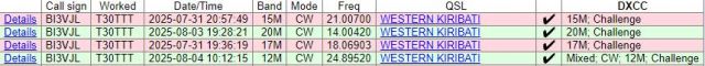 最开始我对T30TTT的关注度是不足的,认为前期已经追逐到了T32EU基里巴斯。直到认真查看了对方的QRZ主页,显示其QTH为西基里巴斯,而T32EU属于东基里巴斯,是两个不同的DXCC实体。对于后续可能出现的T31(中基里巴斯)也需要格外关注。