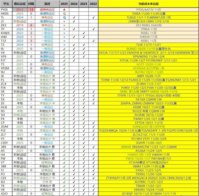 BA5CW:更新一下后续已知的远征信息,黄色高亮的是本月的远征: (2025-10-05 13:57)