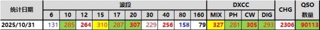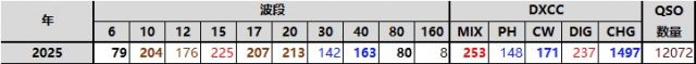 BA5CW:2025年10月个人QSO数量650左右,是本年度最少一个月,在最好的传播下,没有好好追DX,年度DXCC 253,反超去年同期2个,年度挑战分接近1500了。10月份是DX传播最好的月份,但并没有像预期的强周期走 .. (2025-11-01 00:26)