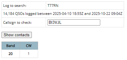 因为21兆的通联成功,我对追逐其他频段的信号也产生了兴趣。9月25日早上6点半左右,在18兆再次接收到了其589的信号。当时没有产生堆积,对方甚至没有异频UP,而是直频。在其频率上展开追击,终于听到了“BI3”的问询,后面也是不断的呼叫,不断的修正,终于拿下了18兆的通联。但是很意外,在查询其clublog时,仅发现了自己21兆的通联结果。不会是遇到海盗台了吧?但是从18兆对方信号的音色,自己的北美天线朝向及与上次通联的相似程度,应该是FP5KE才对,只能寄希望于对方远征结束后的邮件问询了。希望有好的结果,加油!!!