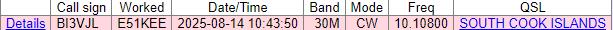 这时我需要作出一个关键性选择,是赌一把直接回复对方599 TU然后在CLUBLOG上等待结果,还是再次呼叫对方重新确认通联?想到当时传播条件的不断下降,我选择了前者。好在最终结果是圆满的,南库克群岛DXCC通联成功!2026年对方还会再次在南库克群岛进行远征,期待未来与其可以完成更多通联。