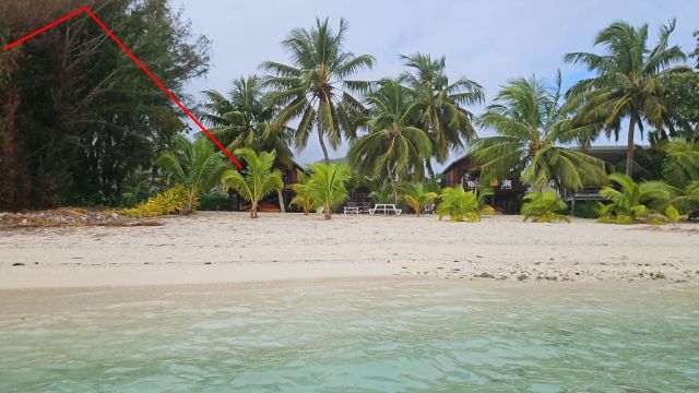(上图)第三根端馈从屋顶延伸到海边树顶,后再向右延伸到更高处的树顶(转弯后,此段天线走向与海边平行)