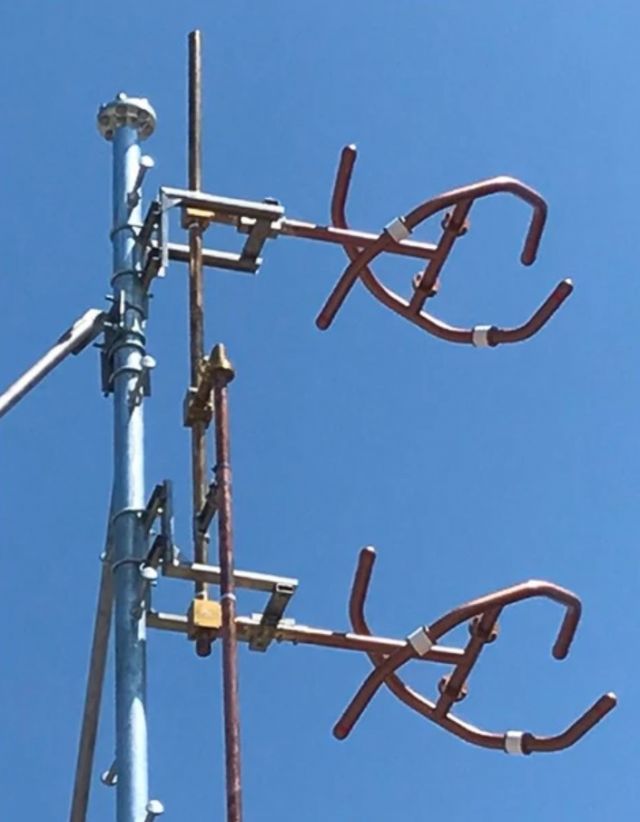 在城市环境使用UV段通联时由于信号在建筑物之间的反射绕射会导致信号极化方向发生偏转,就和接收卫星信号一样会遇到极化方向错误导致接收损耗增加的问题,实践中也可以通过使用圆极化天线来解决这个问题。但上文提到的四臂螺旋天线并不适合地面通信使用,因为四臂螺旋天线的仰角较高只适合用来收发来自上方的信号(UV段几乎没有电离层反射特性也不能像短波那样玩NVIS)
