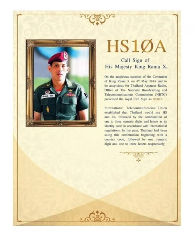 2019 年登基时,该国业余无线电协会专门在当时亚洲唯一的泰国航母上,设立“特设纪念台”,与全世界的业余无线电爱好者联络,以纪念新王登基!我也有幸完成通联,也得到了确认通联的 QSL 卡片。