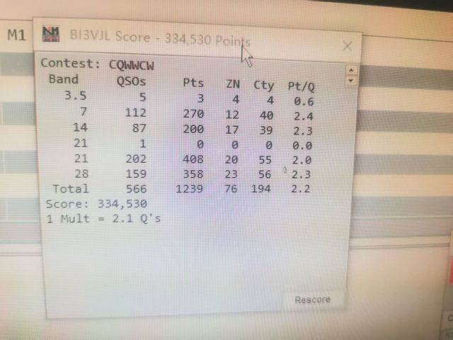 分值首次突破30万,QSO数量突破500大关。