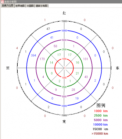 主要通联区域仍然集中在西北方 5000-10000km的欧洲区域,394个, 占到了通联总数的29%