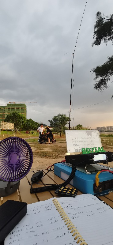 广州珠江边野外摆摊qrp,小水枪滋水,折腾了各位老登老炮师的耳朵了哈,天公不作美,两天都下雨,狂风暴雨,苦到我了。手写的日志,回家再补录日志。没有频谱、没有SDR、没有瀑布图、,没有电脑和软件,最简陋的,两根小虾须(用了10年的拉杆正v),用的设备是黑鼠  和891。5瓦QRP,只通了50个台。打酱油的,很惊奇的是7区的台少了些,遇到日本、菲律宾的电台也参与到WACP比赛中。从13年接触无线电,15年参加WAPC SSB比赛,12个年头过去了,我还是没什么长进,既不考C,也不跟风买一步到位的设备,本地圈子流行赶着一步到位的短波机器和要发红了眼考个C牌能位列仙班但就是不玩通联和比赛的新世纪时髦,能另类的拿个简单的RIG通了几十个台,不容易。十几年依然兴趣不减,还能交到一些朋友,还真不错,今年的WAPC遇到很多第一次通的新朋友。也碰到了老多老朋友,比如豆豆哥KOK,还真是不错。美得很啊···期待我们的WAPC越来越红火。