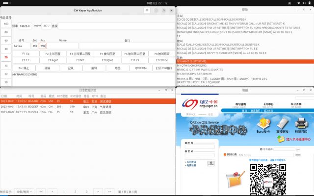 这是一个使用 GTK3 和 C++ 构建的业余无线电操作和日志记录项目,主要用于 CW(莫尔斯码)的操作和记录,类似 N1MM,结合 CW 自动拍发线。用户可以直接在 CW 莫尔斯码输入框中输入 CW 莫尔斯码,然后点击发送按钮即可自动拍发。也可以定义功能键 F1-F12 发送 CW。