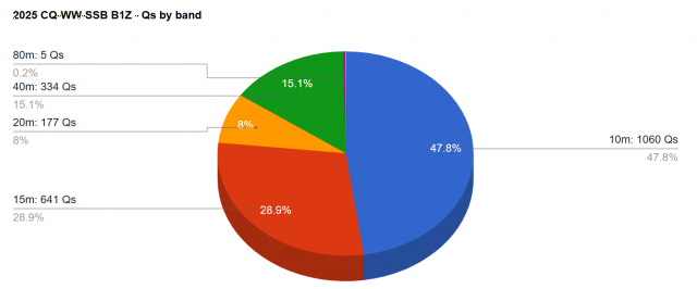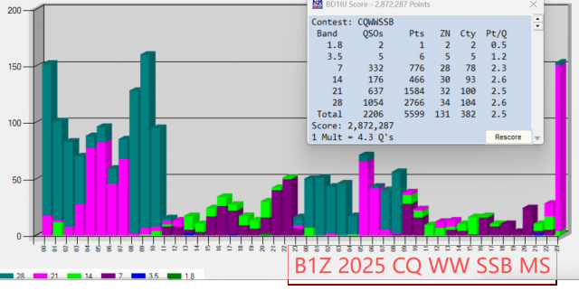 今年比赛期间的传播条件并不好。第一天早上短暂的北美信号洪流后传播条件下降,操作员们陷入成效不高的呼叫苦战;比赛最后一个小时15米波段传播变好,赚到些许分数。最终,经过48小时的奋战,我们联络了131个CQ分区、382个DXCC实体的共计2206个QSO。虽然没有超过去年的成绩,但是通过比赛我们改进了成员的操作意识,以后可以小型比赛多多练习。本次比赛采用开放了参观,比赛期间新老HAM欢聚一堂。讨论了很多通联技巧,很多新HAM提出了学习的需求,看来这种交流学习的活动要多多开展,多多培养新生力量。参加比赛和前来助威、观摩的的有:BA1RB、BA1GM、BD1RX、BD1IIJ、BH1OFJ、BD1GO、BD1OP、BI1LWV、BI1TMQ、BH1UZJ、BI3EI、BA1AJ、BH3QBY、BI3ARY、BI1QMQ、BI1OIY、BI1KBR,等等(因为比赛的缘故有可能没有全部列出)。
