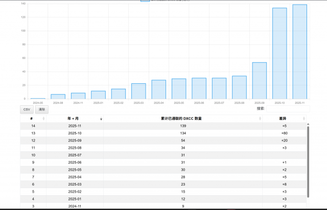 从2024年10月至今年8月主要在6m FT8 on air,收集到的DXCC有限,大约为20左右, 今年9月开始在HF SSB CQ DX获得了一定数量的DXCC增加,10月9日开始在HF FT8追逐DXCC,于今日达成DXCC MIXED 100