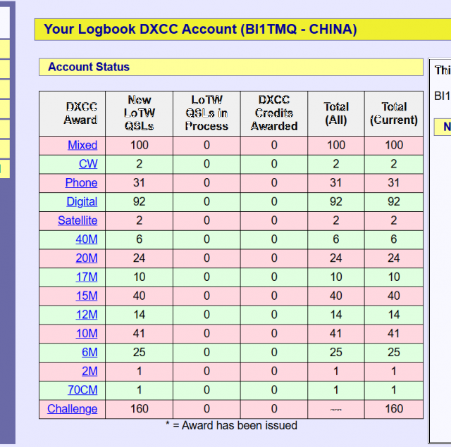 截止至2025年11月4日 BI1TMQ完成LOTW 100 DXCC QSL 共计worked 139 DXCC