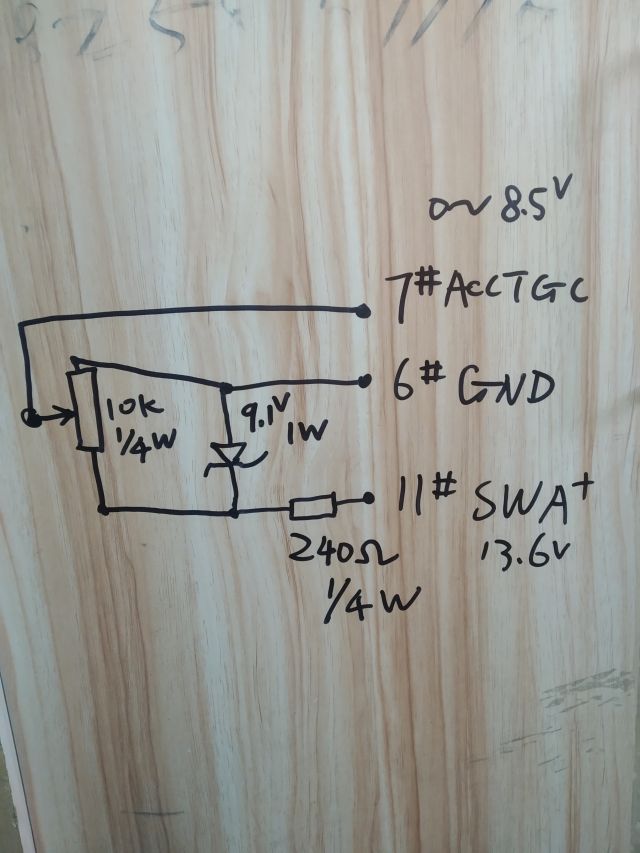 使用是的机器后面的acc口,电阻240Ω,1/4瓦;稳压二极管9.1V 1瓦,电位器10kΩ。